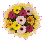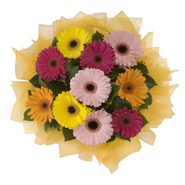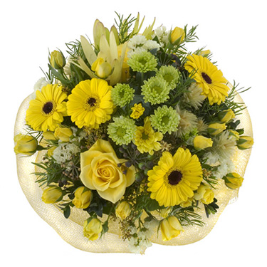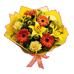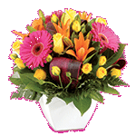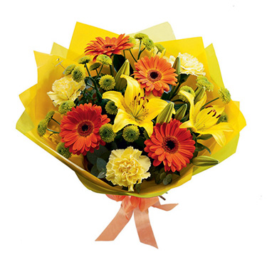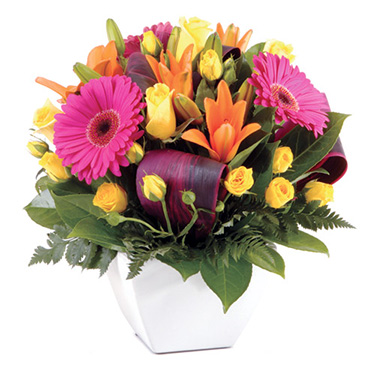 A mixed vibrant bouquet of flowers available in a variety of colours.