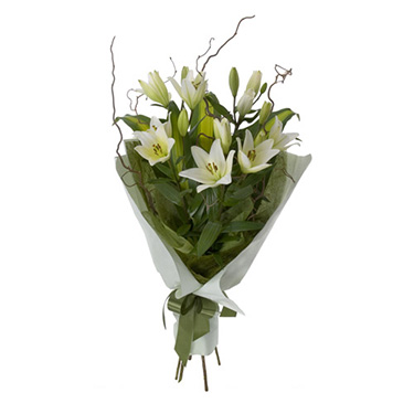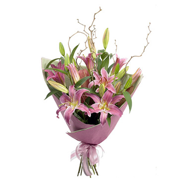 A simply stunning selection of perfumed oriental lillies wrapped in fabric.