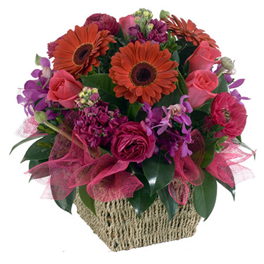 A modern basket arrangement available in a variety of colours.