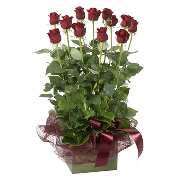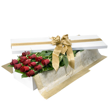 A box arrangement with a dozen 40cm red roses (Including Box).