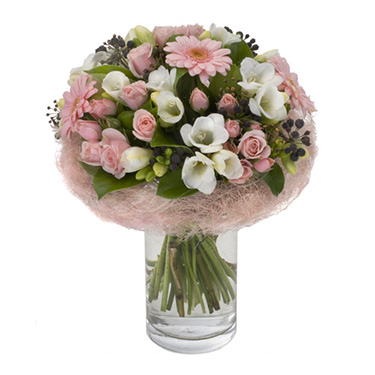 A mixed vibrant bouquet of flowers available in a variety of colours.